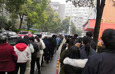 Because of the outbreak of omicron in changsha,Sunmans employees queue up to been tested for the COVID19 virus in the Lugu international industrial park.